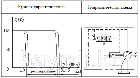 Примечание: если гидравлическая нагрузка увеличивается, давление масла мгновенно увеличивается, а расход насоса уменьшается до тех пор, пока давление не упадет до постоянного давление. Наоборот, если гидравлическая нагрузка уменьшается, давление масла падает мгновенно, скорость потока увеличивается до тех пор, пока давление не достигнет постоянного.
